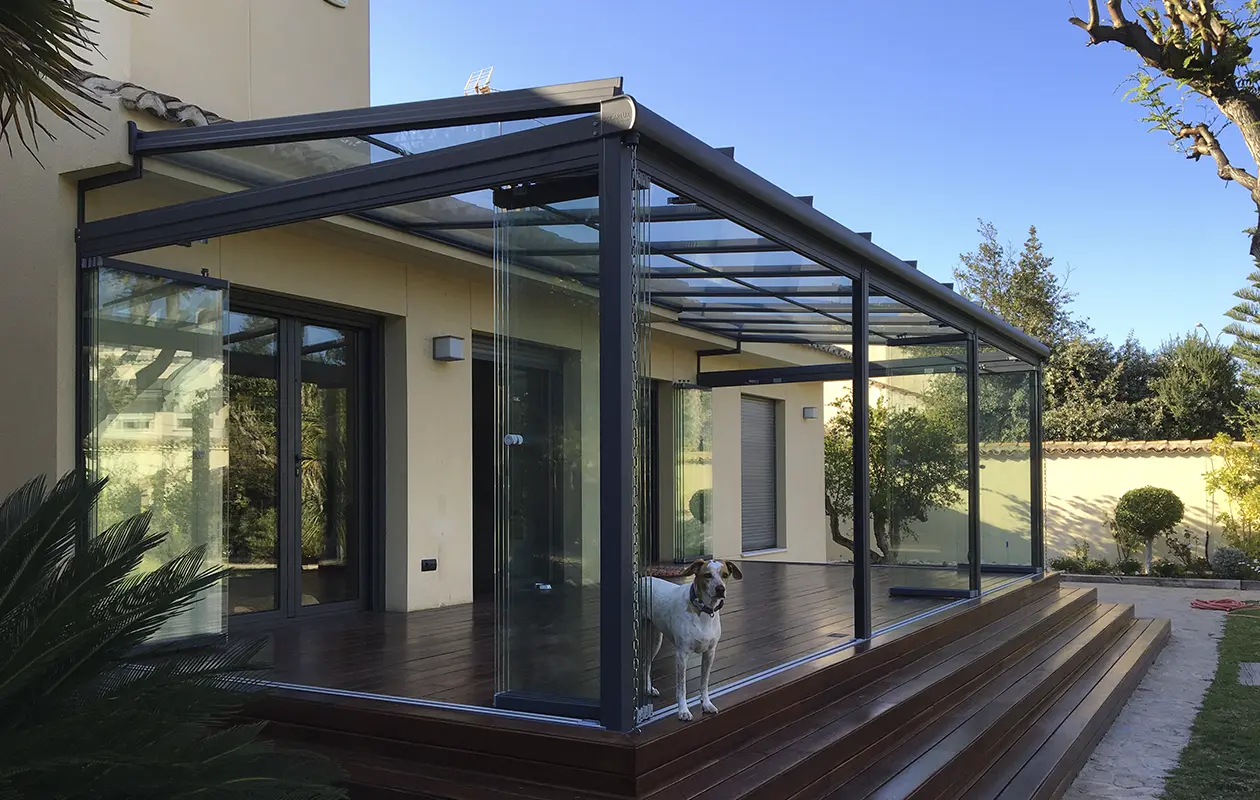Ofrece protección total contra el viento y las inclemencias climáticas, así como un excelente aislamiento acústico. Sus paneles sin marco te permiten disfrutar del aire libre en verano y seguir utilizándolos en días de mal tiempo con las ventanas cerradas.